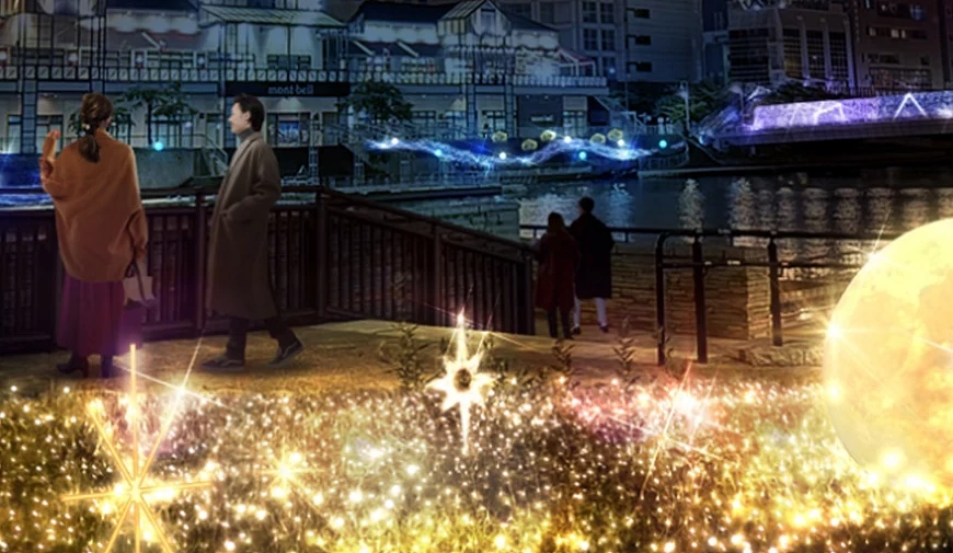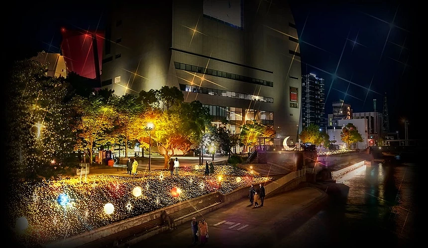 北九州冬夜的浪漫代表「小倉燈光秀」活動範圍涵蓋JR小倉站周邊、紫川河畔、井筒屋前廣場與小倉城等地,整座城市在夜色中被燈光溫柔包圍。每到冬天,小倉的街道便會換上金色光衣,橋梁與河面倒映出閃爍景色,吸引無數攝影愛好者前來取景。今年會場也延續往年的規模與浪漫氛圍,不只欣賞燈飾,更能感受北九州冬日的熱鬧與溫度。無論是與戀人漫步河畔,或與家人朋友共度聖誕,都能在這座光之城市裡找到屬於冬季的幸福時光。