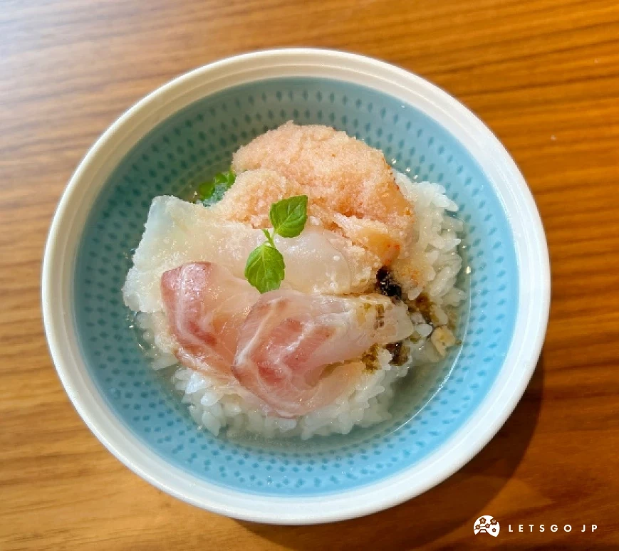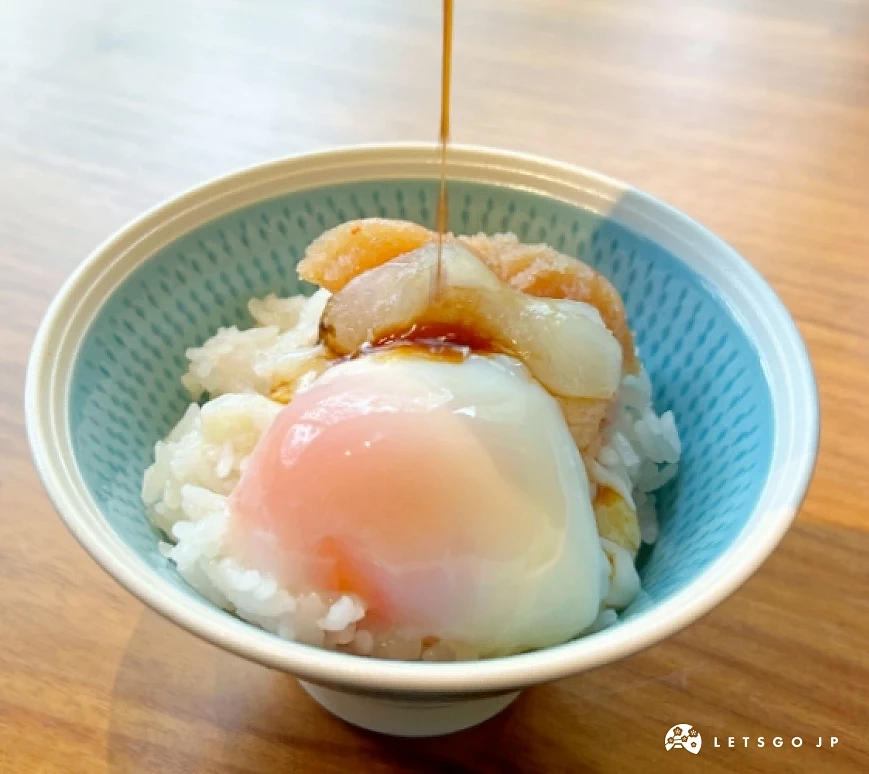 首先在熱騰騰的米飯拌上「現做明太子」一起享用,帶有些微柚子香氣的「現做明太子」吃起來不會過鹹,魚卵的特殊顆粒口感也讓人食慾大開。二吃可嘗試在飯上加入其他食材以及溫泉蛋後,淋上醬油一起品嚐,半熟的蛋黃搭配明太子一起吃,口感更加滑潤順口。三吃則是海鮮茶泡飯,鋪上生魚片以及明太子後再淋上店家的特製高湯,不僅口味溫和,也相當暖胃,不知不覺就把白飯吃得一乾二凈!