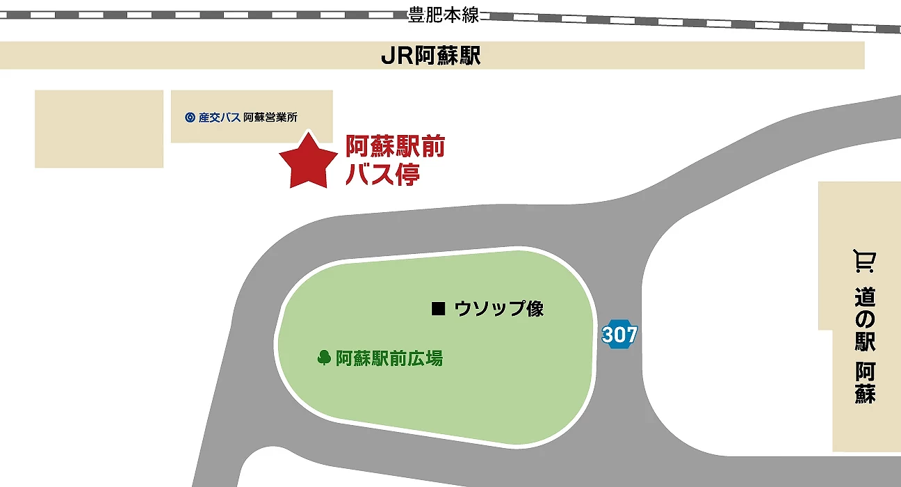 「阿蘇周遊巴士」共有3個上下車地點,預約時請務必註明想要上下車的地點,以便巴士停靠、掌握行程。
