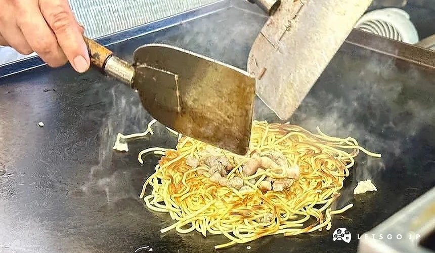 日田炒麵是大分縣的必吃美食,在60多年前由「想夫戀」創始,特色是先將新鮮水煮後的自家製麵放到鐵板煎至表面金黃焦香,吃起來不但口感酥脆,並能感受到麵條原本的的鮮嫩多汁,配上肥美的豬肉、優質水源培育的豆芽、契作農家的新鮮蔥層層與特製醬汁堆疊起來,讓人食欲大開,一下子一盤就一掃而光。