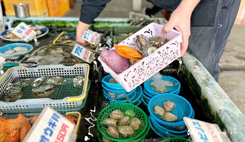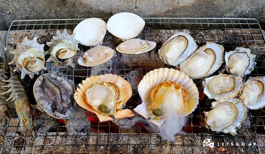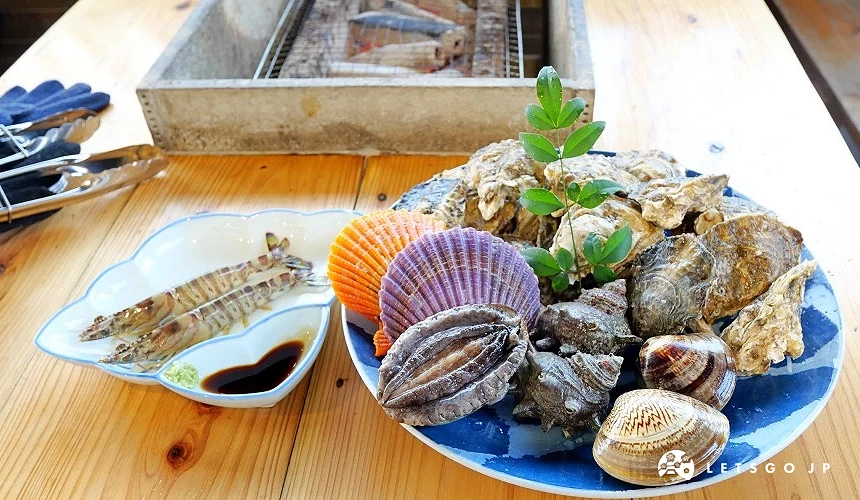 店內有提供 PayPay 、LINE Pay 等電子支付,且點餐方式簡單易懂,會先有專人陪同挑選水槽內新鮮海產與確認其他副餐點餐,等食材送上桌後即可自行進行燒烤。座位上有充足的調味料與備品,還提供淺顯易懂的中文燒烤說明書,不會日文也能輕鬆享用美食。