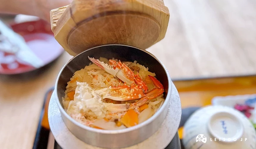 送上桌的螃蟹會先剝好,且在蟹腳稍微剪過,因此不需費力便可輕鬆品嚐到蟹肉。雪白色的蟹肉綿密且鮮嫩,現選現做的口感,跟冷凍過的蟹肉等級完全不同,螃蟹味噌湯的滋味也鮮美到不行。若想品嚐不同螃蟹料理,還可用優惠的價格把白飯換成雜炊或是螃蟹釜鍋飯。內含蟹肉、竹筍、香菇、牛蒡、雞肉、紅蘿蔔等豐富食材的現做釜鍋飯,不僅香氣撲鼻,口感也相當高雅,一定要來品嚐看看。