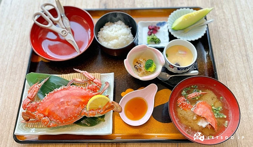 「和風餐廳川下」的座位有可欣賞有明海風光的靠窗座位,也有眼前就可看到竹崎螃蟹水槽的吧台區,無論風景或料理上都充滿「太良町」特色。因為螃蟹定價會受到產量與大小影響,可先確認電子菜單後再進行點餐。店內可品嚐到用螃蟹製作的各式料理,其中記者最推薦「螃蟹御膳」,餐點包含一整隻螃蟹,還有螃蟹味噌湯、白飯、醬菜、茶碗蒸、時令小菜、季節水果等餐點,能讓人吃得十分飽足!