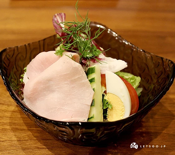 升級套餐只需額外加600日圓,即可享用沙拉、湯品(玉米濃湯或洋蔥湯二擇一)、白飯及飯後咖啡。加價800日圓還能將白飯升級為香氣十足的蒜香飯。套餐中的沙拉特別使用店家特製火腿,口感軟嫩美味,搭配以醬油與美乃滋調和而成的獨家沙拉醬,風味獨特。玉米濃湯與洋蔥濃湯香氣濃郁,不管選哪個都非常滿足。整體升級套餐不僅豐富美味,CP 值也非常高。