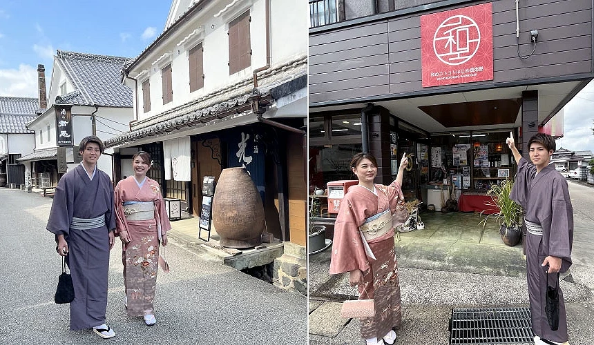 由當地人經營的「日本Kotokoto Hajime 俱樂部」提供和服與浴衣體驗,款式多樣且質感細緻,由專業和服老師著裝。換裝完畢後漫步於肥前濱宿老街,白壁土藏與木格窗交織出歷史風情,彷彿穿越時空回到江戶時代。推薦參觀老字號清酒釀造老舖,或前往祐德稻荷神社參拜。沿途有不少小店與特色咖啡館,無論拍照或感受在地生活氣息,都能留下屬於鹿島的浪漫記憶。