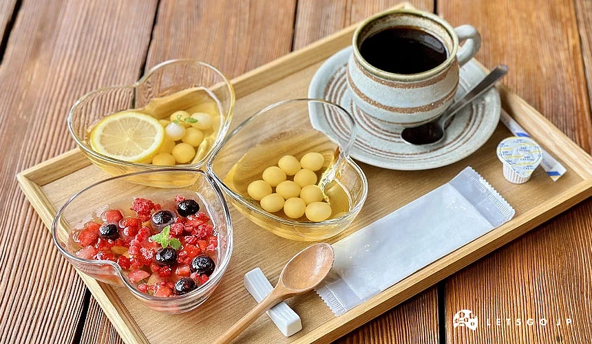 位於老街內的「島原湧水館 Koi咖啡湧水」,是一座由約百年町家改建的和風咖啡館,建築本身被列為有形重要文化財。推開拉門,步入古色古香充滿暖意的老宅,入座長廊窗邊座位,能靜靜欣賞庭園水面波光。店內提供以島原湧水製作的甜點與飲品,特別推薦傳統鄉土點心「寒曬(かんざらし)」與香氣濃郁的手沖咖啡套餐,能一次品嚐原味、檸檬、莓果風味的冰涼白玉甜品。在靜謐的町家老宅中享受午後時光,細細品味島原湧泉風情。