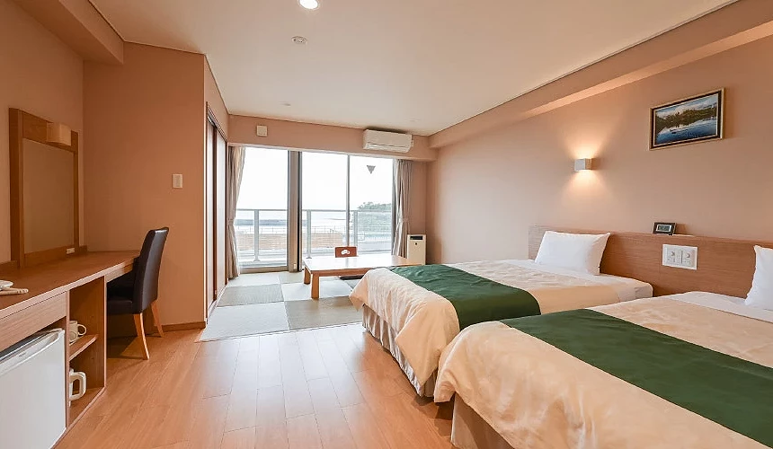 坐落於島原外港旁的「海濱島原」,是一間能近距離欣賞有明海與雲仙岳絕景的海景溫泉飯店。客房以寬敞舒適的和洋式為主,部分房型設有露台與典雅的榻榻米休憩空間,可悠閒眺望大海與夕陽。館內人氣最高的是面海的大浴池「雲仙之湯」,泡湯同時能望見天空染上金紅的晚霞。餐點以當地新鮮漁獲與季節食材入菜,從鮮美螃蟹、鮮魚生食到長崎牛等皆能品嚐到。便利的地點與療癒的海景,絕對是旅程最後一夜完美的收尾選擇。