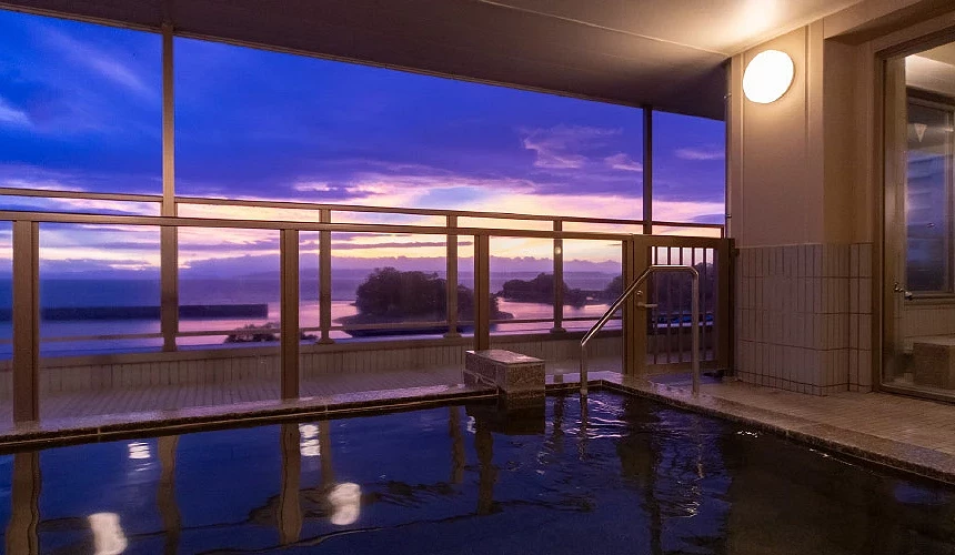 坐落於太良町海邊的「夜燈見莊」,是一間能近距離欣賞有明海景與港町風情的溫泉旅宿。客房以現代日式風格打造,大片落地窗可遠眺海岸與日起日落,放鬆又療癒。晚餐提供以當地漁港直送食材烹調的豪華會席料理,包括在地名物竹崎蟹、濃郁鮮甜的竹崎牡蠣與柔嫩的佐賀牛等,食材新鮮,大大滿足味蕾。館內亦設有溫泉大浴場,泡湯同時能聆聽潮聲,讓旅途的疲憊徹底釋放。