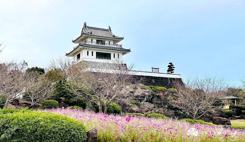 過去的「竹崎城」由南北朝時代的島原有馬氏所築,如今僅存石垣與城堀遺跡。城址附近建有仿古城外觀的觀景台「竹崎城址展望台公園」,因地勢較高,登頂可遠眺壯闊的有明海與對岸的雲仙岳。園內四季花卉繽紛,春有櫻花、秋有波斯菊,景色如畫,也是不少在地人賞花、約會、野餐的熱門去處,展現太良町悠然自得的風情。