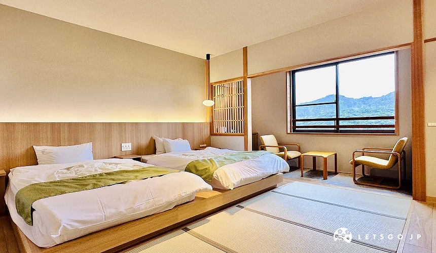 「湯宿 雲仙新湯」鄰近雲仙溫泉街中心,以「在地溫泉、現代舒適」為理念,提供兼具溫泉風情與旅人便利的住宿體驗。館內客房以和洋設計為主調,大片窗景可望見雲霧繚繞的山景與街道,宛如置身仙境。「雲仙新湯」敷地內就有自家的溫泉源泉,泉質柔滑、溫潤肌膚,搭配上部分客房內設有私人露天風呂以及能眺望雅緻又富有詩意的日本庭園,一邊泡湯一邊聆聽自然聲,簡約卻不失格調,是感受雲仙溫泉魅力的絕佳住宿選擇。