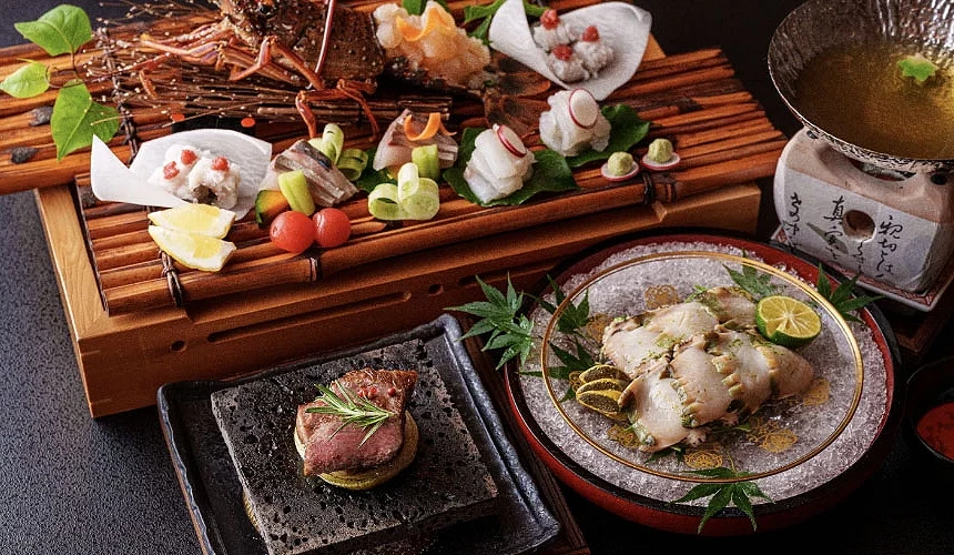 被譽為雲仙地區最高級旅宿之一的「旅亭 半水盧」,以傳統數寄屋造建築(茶室風格)與細緻待客服務聞名。館內僅有十餘間客室,每間皆設有獨立庭園或露天風呂,私密性高,靜謐氛圍讓人忘卻塵囂。餐點由嚴選長崎近海與當季食材,呈現如藝術般的懷石料理,是兼具視覺與味覺的饗宴。夜晚泡在被樹影圍繞的露天湯中,耳邊是蟲鳴與風聲,彷彿置身雲煙繚繞的桃源境。