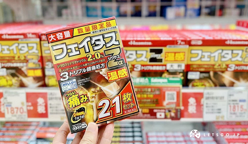 「久光製藥Feitas Zα Dicsas」溫感貼布主打溫熱感深入舒緩,官方標示用途包含腰痛、肌肉痛、肩頸不適、關節痛、扭傷、挫傷等常見狀況。貼布服貼度佳,能穩定貼合肩頸、腰部或膝蓋等部位,溫感設計讓緊繃感逐漸放鬆。14+7入的大容量包裝,無論是旅行期間隨身使用,或帶回家作為日常備用都很實用。(提醒:若疼痛持續、加重或合併其他不適,建議諮詢醫師/藥師。)